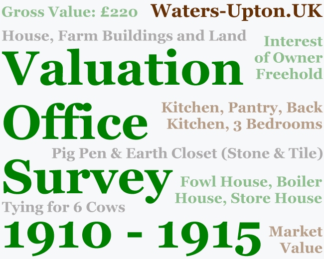 Abstracts of entries for Assessment Numbers 596 to 609 in the relevant Valuation Office Survey Field Books (completed 1910-1915) covering the parish of Waters Upton, held at The National Archives, Kew (IR 58/75804 and IR 58/75805). My grateful thanks to fellow one-placer Liz Craig for providing me with photos of the Field Book pages, which I have used as the basis for these abstracts.