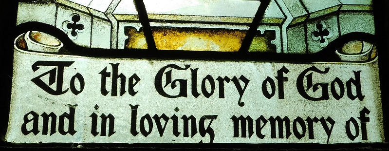 Left window: TO THE GLORY OF GOD IN MEMORY / OF JOHN RIDER M R C S OF WELLINGTON