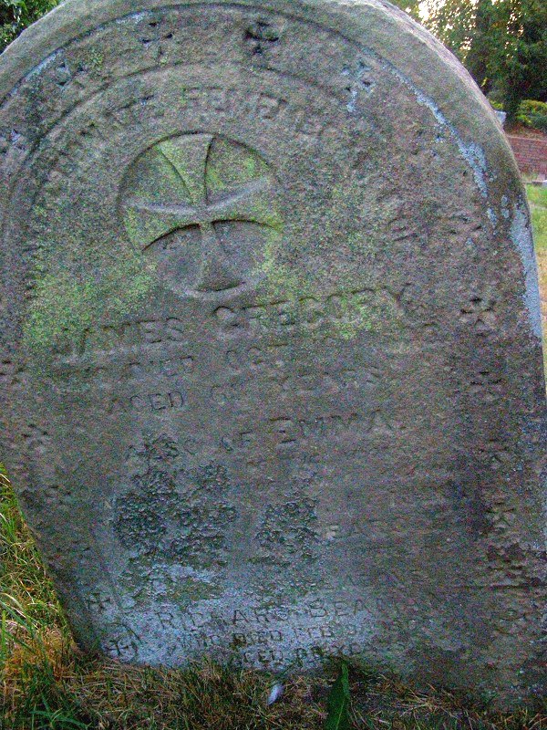 James was almost certainly the James Gregory who was baptised at Waters Upton on 13 November 1797, parents James and Elizabeth Gregory, and also the James Gregory whose death was registered at Wellington, Shropshire in the last quarter of 1865. The 1851 census shows James, 53, a tailor, and wife Sarah, 54 (born either at Sidbury, or Lydbury North), with their children John Gregory, 22; James Gregory, 17; Emma Gregory, 20; and Elizabeth Gregory, 14; all born at Waters Upton.