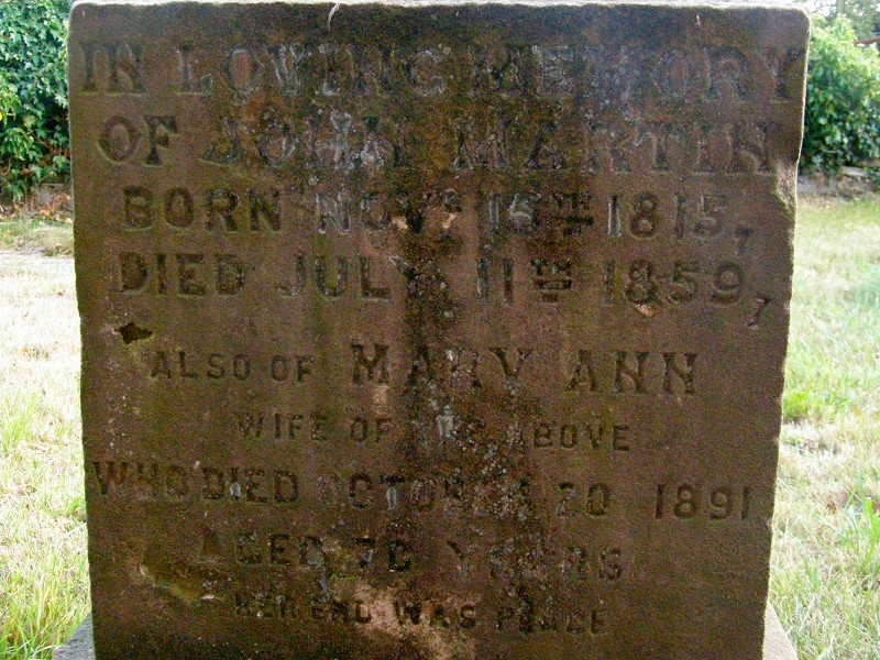 This is the memorial stone of my great, great grandparents – John and Mary Ann MARTIN. Many of my ancestors lived in Ellerdine, Rowton and Waters Upton. Tim Harris