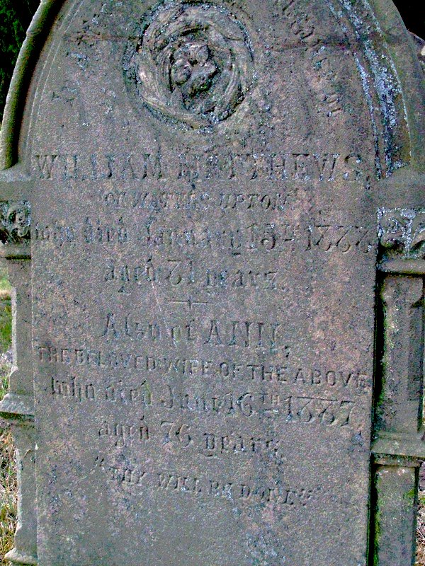(The last four lines above were kindly provided by Gordon Fulton, who photographed this stone back in 1985 when it was more legible.)