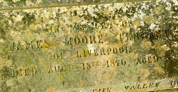 James was enumerated with his parents in 1841 (at Walton on the Hill) and 1851 (at Toxteth Park). I have not however found him on the census of 1861. The reason for this is that James was then in America: on 16 April that year he wed Emily Mary Rachau at Grace Church, on Broadway, New York. He brought Emily back to England, and the couple had five children on the Cheshire side of the Mersey. The last of those children, Amelia May, was born on 14 September 1870, just under a month after James’s death.